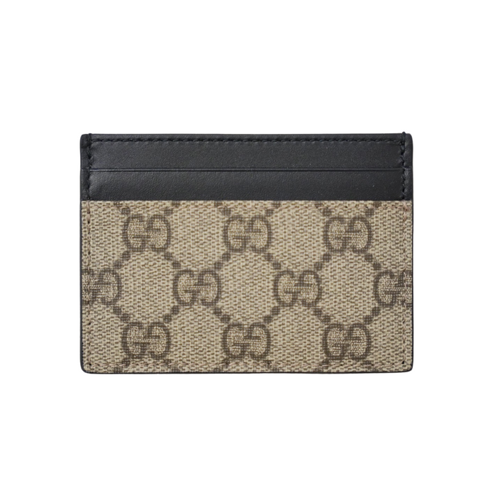 Beige and black GG Monogram coated fabric; easy to carry card case