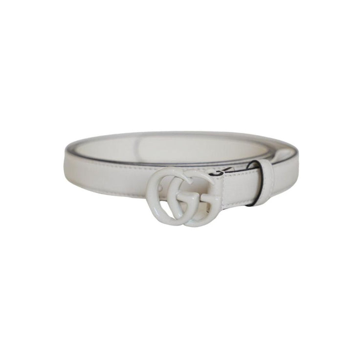 With its sleek white finish, it’s a refined and timeless addition to any outfit. The ultra-thin leather band is complemented by a matching GG buckle.